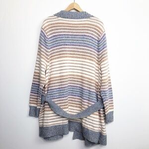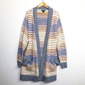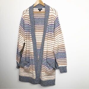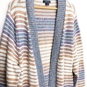 Lands end striped oversize duster cardigan with two pockets belted closure.
