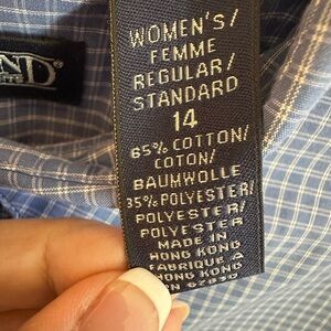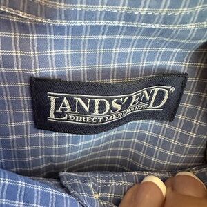 LANDS'END Blue square button classic cotton blend casual office blouse 14