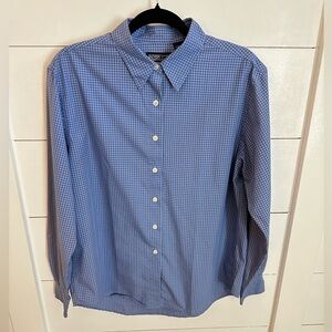 LANDS'END Blue square button classic cotton blend casual office blouse. Wear with jeans, dress slacks or dress up your leggings.
