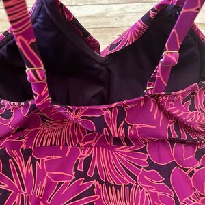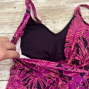 LANDS’ END Ladies’ Swim Dress Medium Purple Floral Built-in One Piece Swimsuit