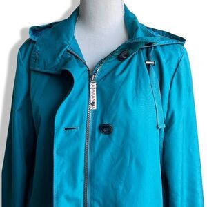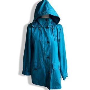 LANDS’ END Turquoise Hooded Windbreaker Utility Style Jacket, Size M