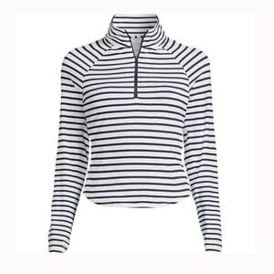 LANDSEND Wms Long Torso UPF 50 Long Raglan Sleeve Quarter Zip Rash Guard Tee