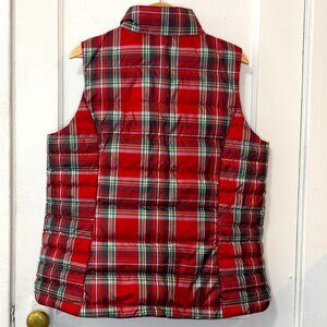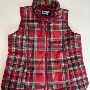 LANDS'END Women's Red Tartan Plaid Down Puffer Vest, Size L (14-16)