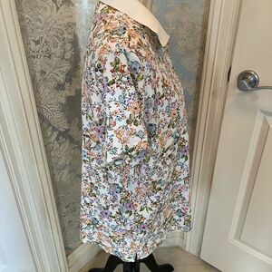 Lands End Polo Style Floral. Super cute top worn only once w small mark inside collar shown can launder out. Adorable I just think this is a better fit for a smaller size than what it is marked. Labeled 1X with 22.5 measurement between underarms which may seem right. I’ve listed this as XL or could be L in light of fit/style/personal opinion. Looks great, as is no returns please ask questions!