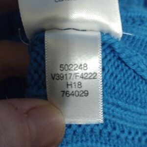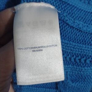 it's in pre-owned condition it has no snags no holes and no stains but it does so some signs of ware it is a very beautiful blue color it's also a very heavy sweater has always I love offers and have a wonderful day. G23