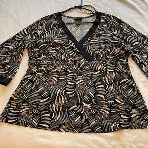 LANE BRYANT 18 Jungle Leaf Print V-Neck Top 3/4 Sleeve Empire Waist Maximalist