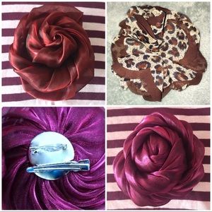 LANE BRYANT 2 in 1 Hair Clip Pin Satin Rose Flower Floral Styling Purple Fuschia