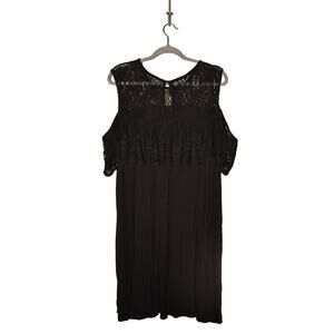LANE BRYANT $89 Black Ruffle Lace Yoke Cold Shoulder Shift Dress Size 18 / 20