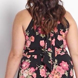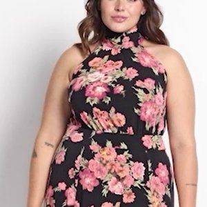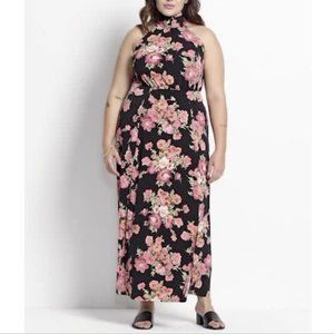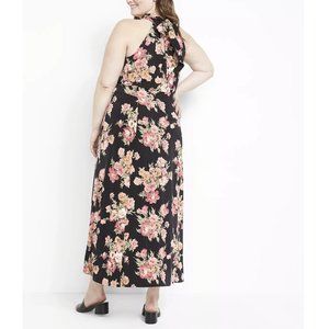 LANE BRYANT BLACK BLISS FLORAL TIE-HALTER NECK MAXI DRESS