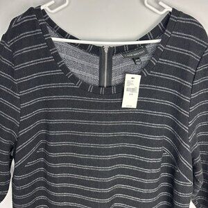 LANE BRYANT BLACK WHITE STRIPED 3/4 SLEEVE FIT & FLARE SCOOP NECK DRESS 18/20