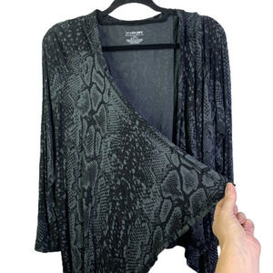 LANE BRYANT Black & Grey Reptile Print Flowy Cardigan
