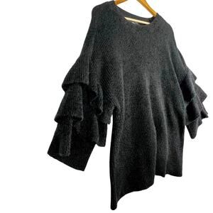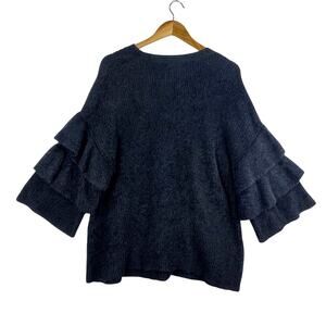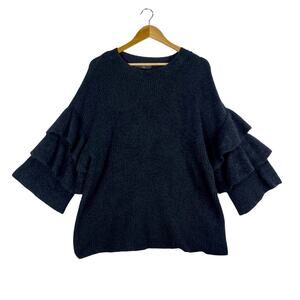 LANE BRYANT Black Tiered 3/4-Sleeve Soft Stretchy RIBBED CREW NECK Sweater 18/20