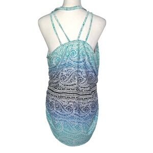 LANE BRYANT CACIQUE Womens 24 Blue Green Ombre Paisley Halter Swimsuit Dress Top