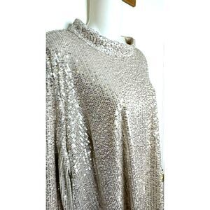 LANE BRYANT CHAMPAGNE TAUPE SEQUIN LONG SLEEVE TOP KEY HOLE BACK PLUS SIZE 26