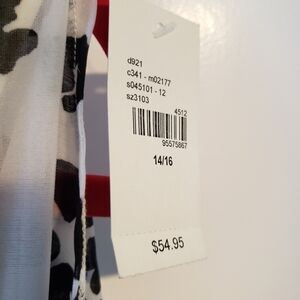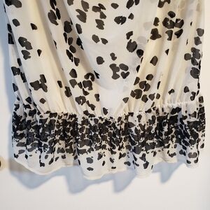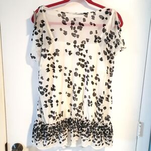 Black and white sheer top with split sleeves and light elastic at hem for a cute fit. White matching cami can be detached and worn with other outfits! NWT SIZE 14/16