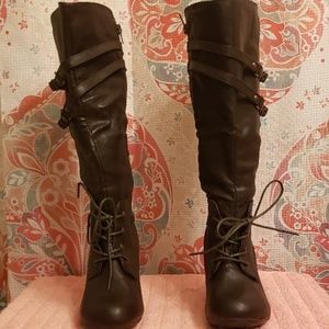 LANE BRYANT CHOCOLATE BROWN WIDE LEG DRESS BOOTS