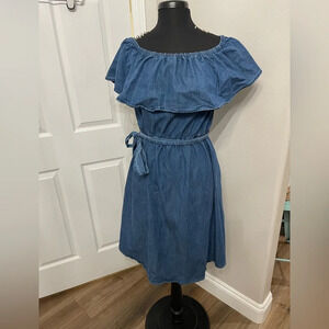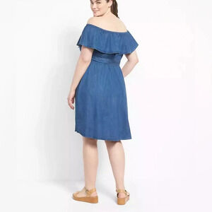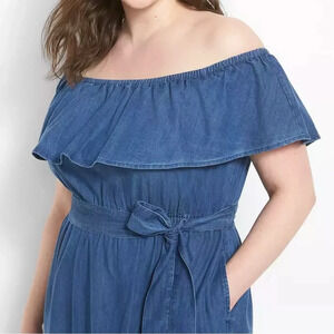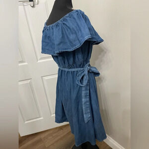 LANE BRYANT CONVERTIBLE OFF THE SHOULDER CHAMBRAY FIT & FLARE DRESS SZ 14/16