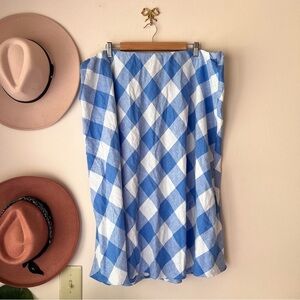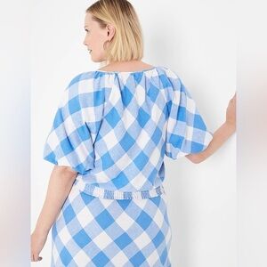 LANE BRYANT Crop Balloon-Sleeve Top & midi skirt set LINEN Lattice Check SIZE 22