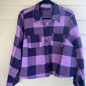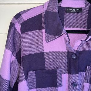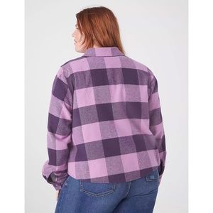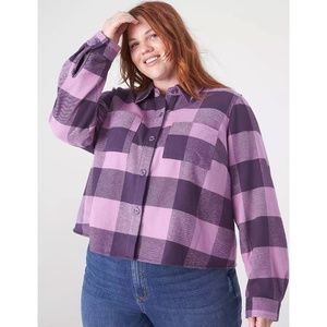 LANE BRYANT Cropped Purple Buffalo Plaid Cropped Flannel Jacket