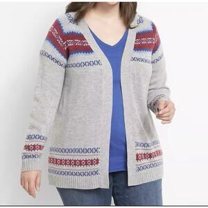 LANE BRYANT Women's Plus Fair Isle Open Front Knit Cardigan Jacket