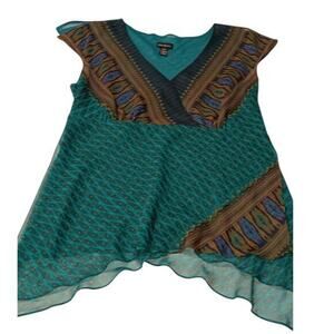 LANE BRYANT Flowy Flutter Long Tunic Top 2X 18/20 Dressy Turquoise Green V-Neck