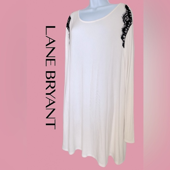 A chic and flattering piece from Lane Bryant, this cream tunic features delicate black lace accents at the shoulders for a touch of elegance. Made with soft, flowy fabric that drapes beautifully, it’s perfect for casual days, nights out, or layering with your favorite pieces.