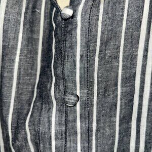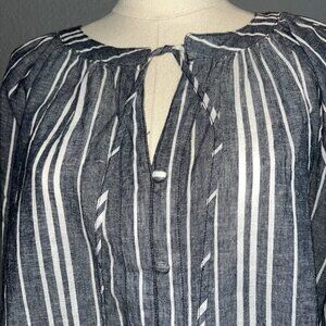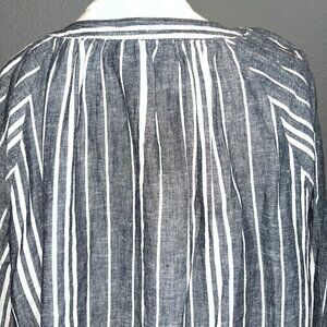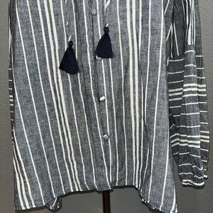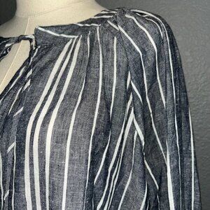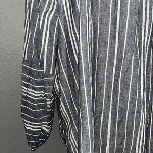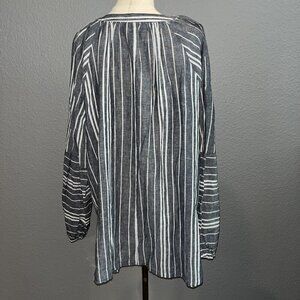 LANE BRYANT Long Balloon Sleeve Peasant Blouse - Linen Blend -Black & White - 26