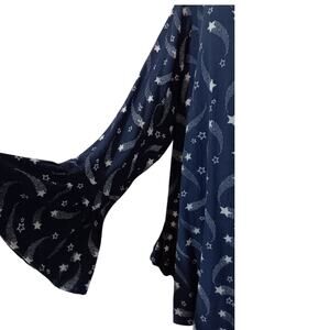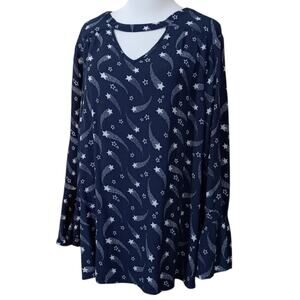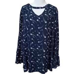 LANE BRYANT Long Tunic Top Blouse Plus 18-2X Flowy Flutter Pockets Stars Blue