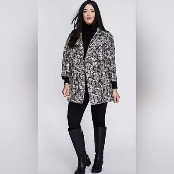 LANE BRYANT Metallic Printed Jacket Coat Black Silver - Size 22/24