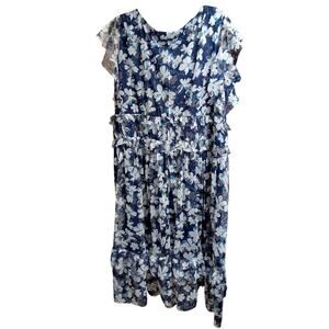 LANE BRYANT Midi Dress Plus 26/28 4X Flowy Floral Ruffle Romantic Cottage Artsy