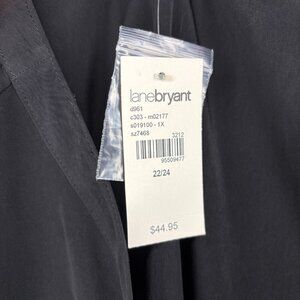 LANE BRYANT NEW Button Up Blouse Womens 22/24 Roll Tab Sleeve Black V-Neck