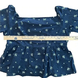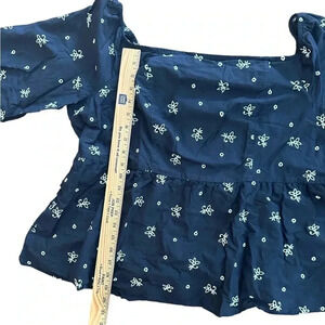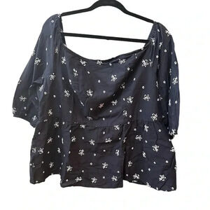 LANE BRYANT Off Shoulder Peplum Blouse Top Blue White Embroidered Size 18 Lined