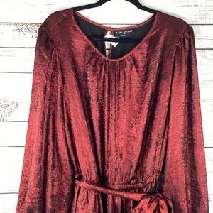 New, LANE BRYANT dress, red bright shinny color, size 24, perfect for the Holidays, party, Christmas, A fit & flare dress with a perfectly twirl able skirt and blouson sleeves, luxe level fabric, crew neck, pockets, under lining, covered elastic at waist, self tie belt with loops, tiered skirt, bust darts provide shape and the perfect fit, single button keyhole back closure. Ptp 29", L 41".