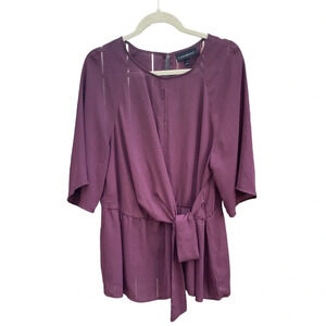LANE BRYANT PURPLE SHEER FLOWY WAIST TIE BLOUSE