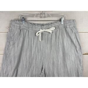 LANE BRYANT Pants Womens 18L Black White Stripe Wide Leg Linen Blend Drawstring