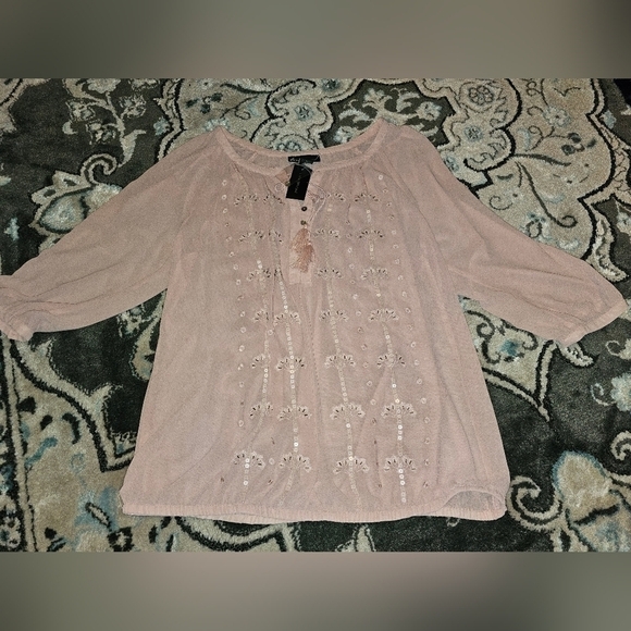 LANE BRYANT Pink Beaded long sleeve Sheer Polyester Blouse 14/16 NEW. "A"