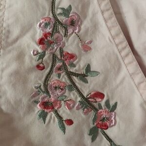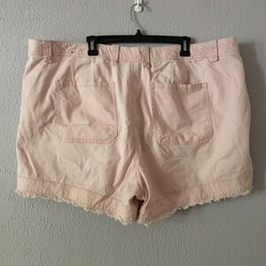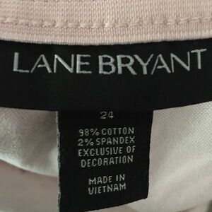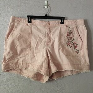 Lane Bryant pink shorts with floral embroidery. Size 24. Shorts have a raw hem, zipper and button closure. Great preowned condition. Perfect for sunny days!