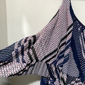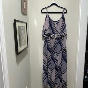 LANE BRYANT Pleated Maxi Dress PLUS SIZE 26/28 Blue Red White Abstract Pattern