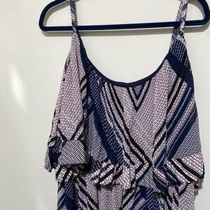 LANE BRYANT Pleated Maxi Dress Red, White and Blue Abstract Pattern. Adjustable spaghetti straps. Lined to about 3/4 of the length.
