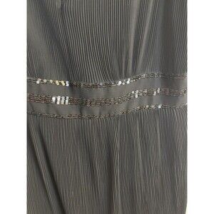 Pleated/accordion, sleeveless, sequins @ waist, v-neck, side zip closure,