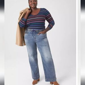 LANE BRYANT Pull-On High-Rise Cozy Wide Leg Jean - Medium Wash Size 16
