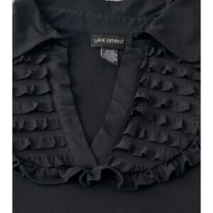 LANE BRYANT SHORT SLEEVE RUFFLED V-NECKLINE BLOUSE, 18/20, BLACK, POINTED COLLAR