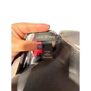 Elevate your look with this stunning Lane Bryant kimono-style wrap, designed to flatter a wide range of sizes with its versatile one-size fit (14–20). This luxurious piece features a striking red, black, gray, and white abstract floral brushstroke pattern, finished with an intricate border print hem and a removable black satin sash belt. Silky and lightweight, it layers beautifully over dresses, tanks, or camis and transitions seamlessly from day to night.