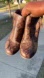 A heeled bootie in faux leather with an outer zip detail. Concealed notch with elastic goring for a comfortable fit. Almond toe. Interior side zip for easy on and off.