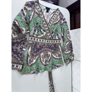 "LANE BRYANT" Stunning Beaded Criss Cross Belted SZ 14/16 Flare Sleeves Gypsy
