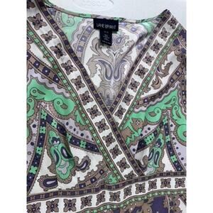Elevate your wardrobe with this exquisite Lane Bryant blouse, a true testament to classic elegance and modern flair. The blouse features a creamy hue that exudes a sense of timeless sophistication, complemented by the intricate beaded accents that add a touch of glamour. Flared sleeves lend a contemporary edge to this piece, ensuring that it stands out in both your professional and casual ensembles. Designed for the plus-size woman, this size 14 blouse embraces comfort without compromising on style. A belted waist defines the silhouette, offering a flattering fit for any occasion. Whether you're dressing up for a special event or adding a bit of sparkle to your daily attire, this blouse is an impeccable choice that embodies the essence of Lane Bryant's commitment to luxurious fashion...27"T x 21.5"W x 23"Arm