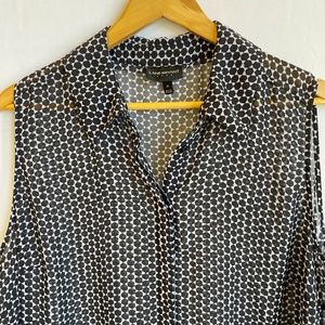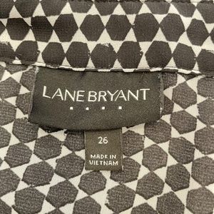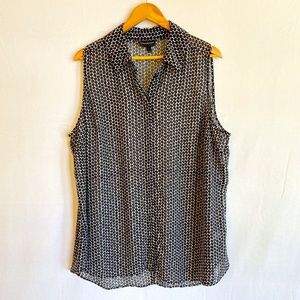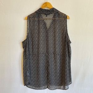 LANE BRYANT Sz 26 Split Tail Sleeveless Button Front Semi Sheer Black White Top