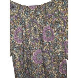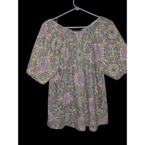 The Lane Bryant women's floral top in a size 14 is a colorful and classic piece perfect for casual, business, or travel occasions during the summer, fall, or spring seasons. This round neck blouse features a short sleeve design with a basic style, making it a versatile and stylish addition to any wardrobe collection. The multicolor floral pattern adds a touch of charm and femininity to this top from a trusted brand like Lane Bryant. Perfect for women looking for a comfortable and trendy outfit option.