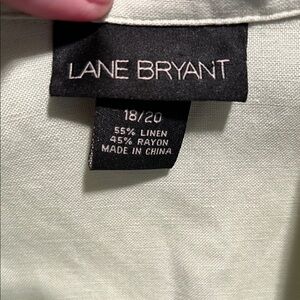 Lane Bryant Linen Shirt. Elevate your wardrobe with this elegant light green button-up top. Perfect for any occasion, this versatile piece offers a classic look with a modern twist. Cuffed short sleeves.