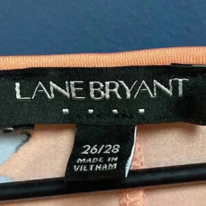 LANE BRYANT WOMENS SIZE 26/28 SHORT SLEEVE FLOWY PEACH FLORAL TOP SMALL RUFFLE NECKLINE WITH TIE CLOSE CLEAN POLYESTER SPANDEX BLEND LENGTH MEASURES APPROX 32” FROM SHOULDER TO HEM SLEEVES MEASURE APPROX 10” CHEST HIPS MEASURE APPROX 29” FROM SIDE TO SIDE